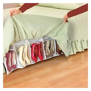 The Ultimate Wrap-A-Round The Bed Shoe Organizer. Holds up to 16 pairs of shoes. One size fits all mattresses. Discover HIDDEN storage space. Leaves valuable space under-the-bed. Keep shoes, NEAT, ORGANIZED and at your fingertips. Tucks easily between your mattress and box spring. Disappears under your dust ruffle or bedspread. 16 ROOMY pockets great for storing shoes, scarves, books, belts, TV remotes, magazines and more. Perfect for kids ... Read More...